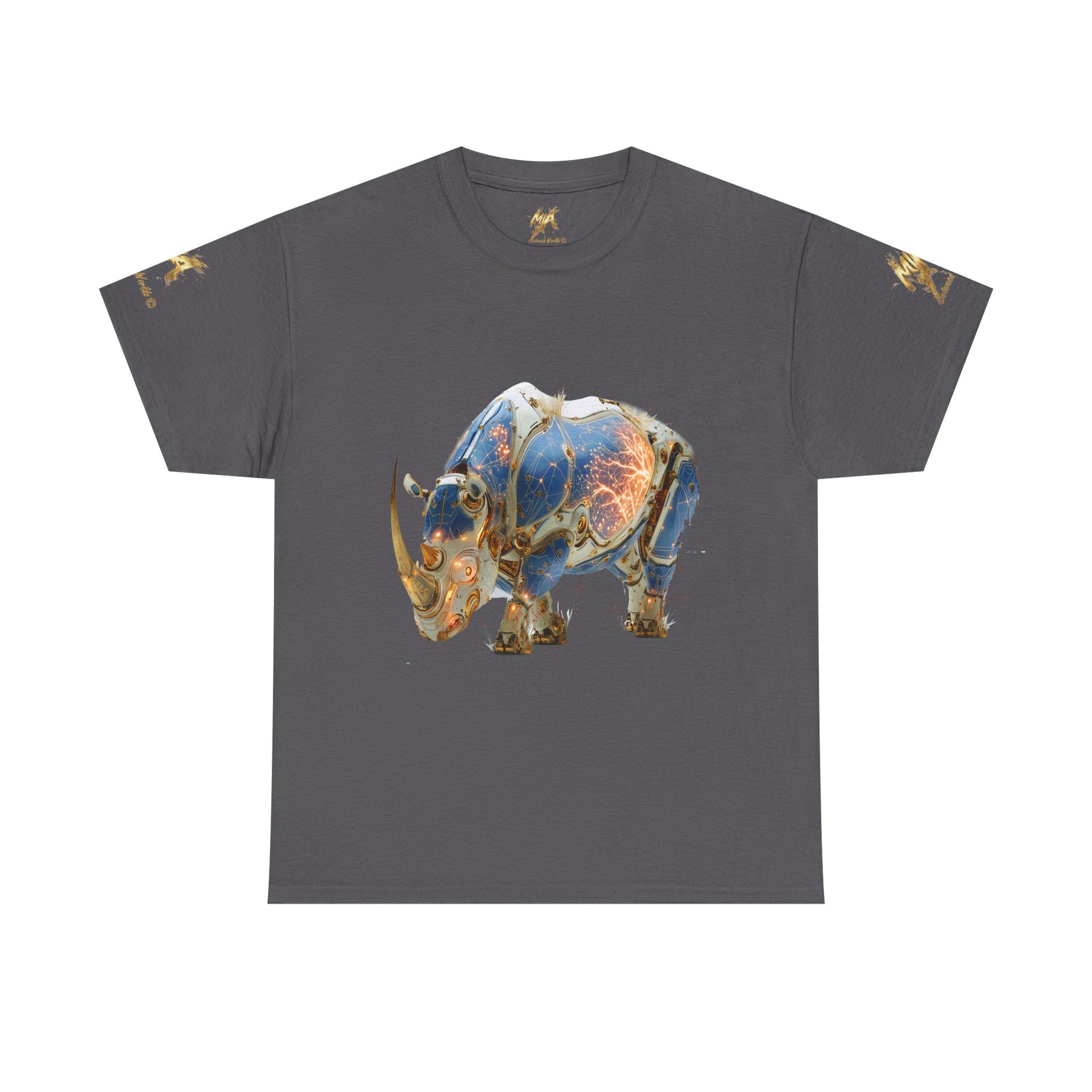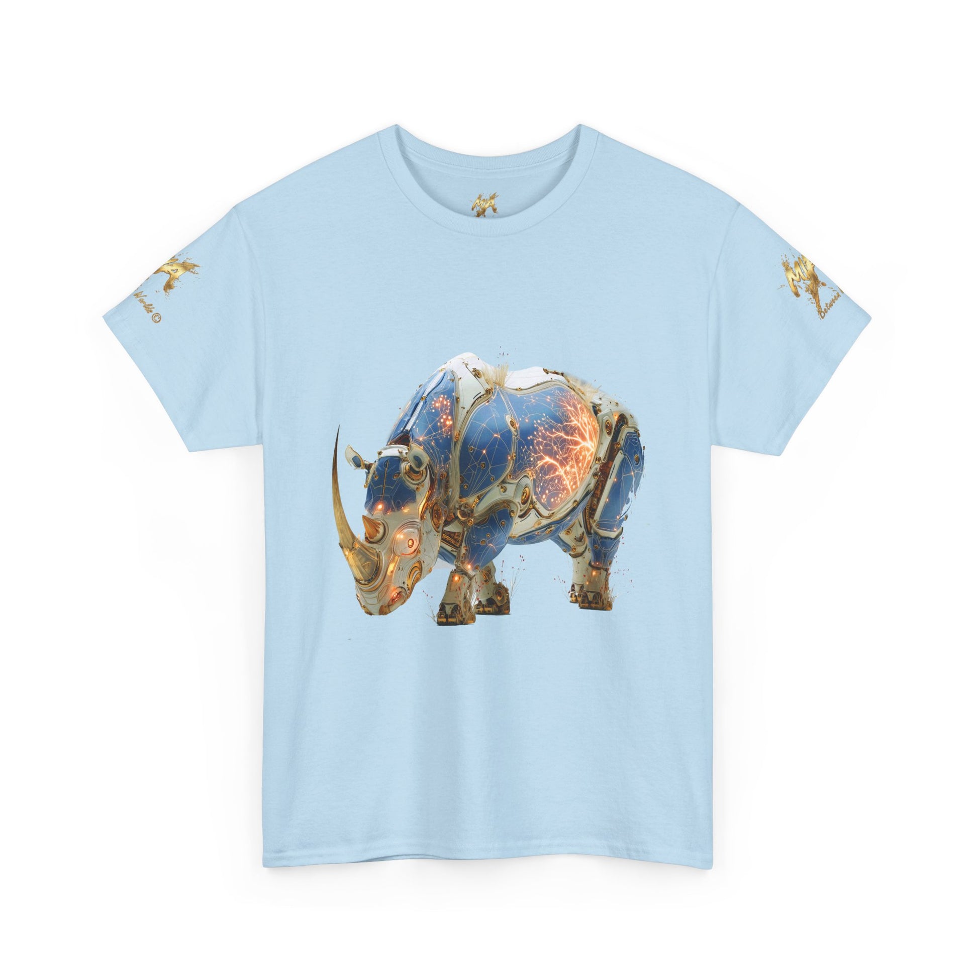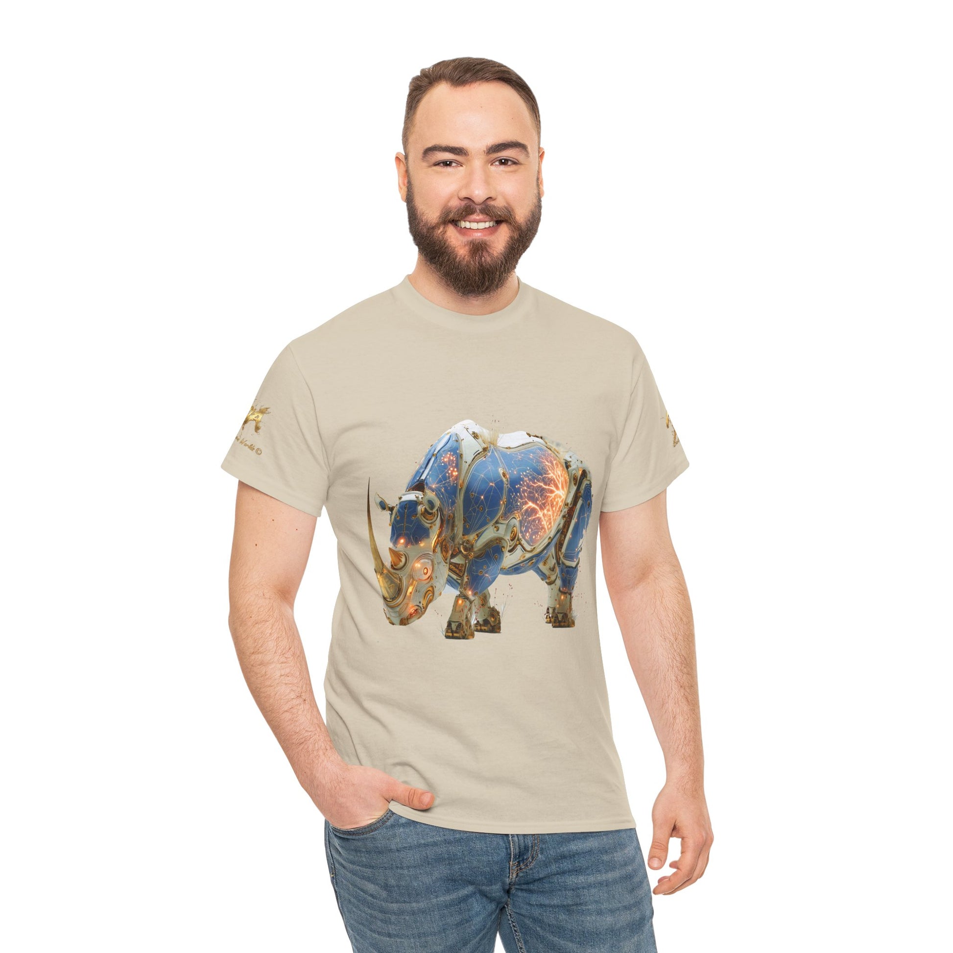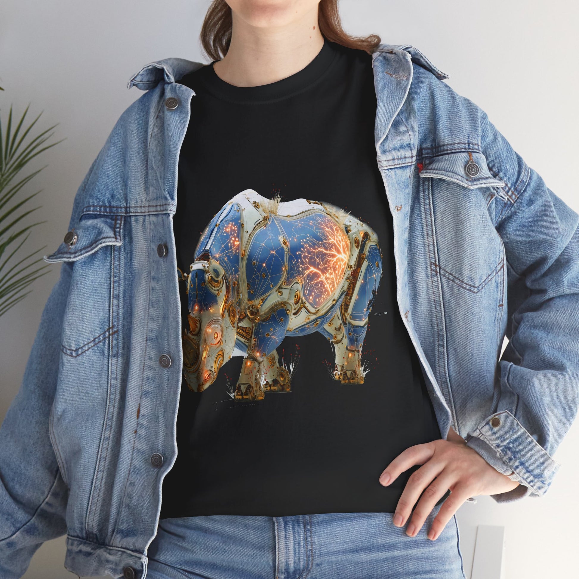 Découvrez ce rhinocéros cyborg unique, une fusion époustouflante entre la faune sauvage et la technologie futuriste. Cette illustration en art numérique généré par IA présente une créature majestueuse revêtue d'une armure complexe en bleu, blanc et or, traversée par des circuits lumineux orangés. Le design détaillé met en évidence une esthétique de haute technologie et de steampunk moderne. Le corps blindé révèle un réseau énergétique vibrant, symbolisant la puissance brute de la nature améliorée par la science-fiction. Parfait pour les amateurs d'art conceptuel, de méchas, de cybernétique et de la beauté des animaux sauvages. Idéal pour décorer des T-shirts, des affiches, des coques de téléphone, des autocollants et d'autres produits Redbubble. Ajoutez une touche de futurisme animalier à votre collection !