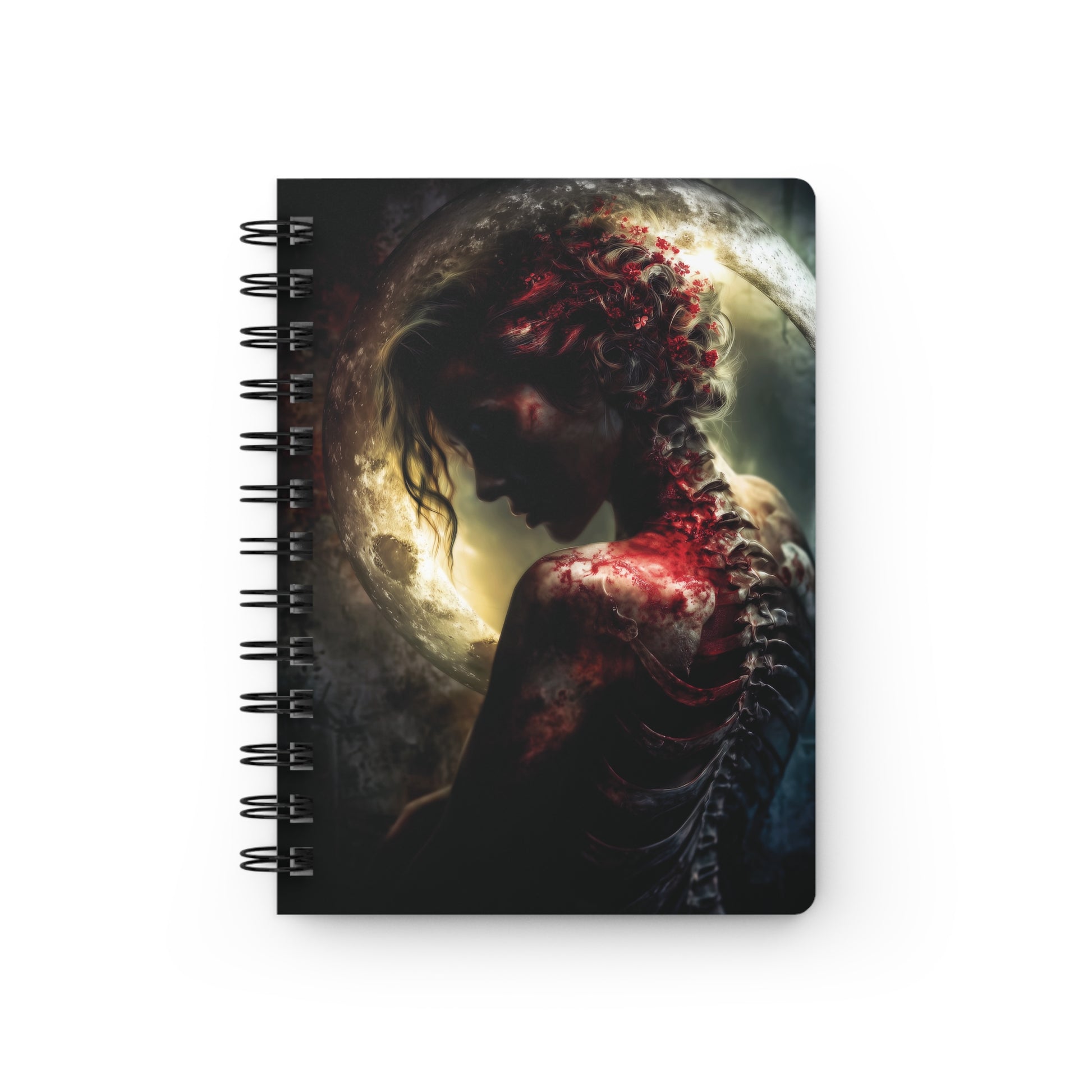 Plongez dans l'intensité du macabre romantique avec cette œuvre saisissante. Le design met en scène une figure féminine à la posture mélancolique, dont le dos est horriblement révélé, montrant une colonne vertébrale squelettique et des blessures sanglantes. Sa peau et ses cheveux (parsemés de fleurs rouges ou de sang coagulé) contrastent avec un croissant de lune immense et lumineux en arrière-plan. Cette illustration évoque un sacrifice rituel, une beauté torturée ou la fragilité du corps face aux forces cosmiques. C'est le design parfait pour les amateurs d'art gothique sombre, de dark fantasy, d'horreur psychologique et de symbolisme puissant. Idéal pour ceux qui aiment les œuvres profondes, intenses et émotionnellement chargées.