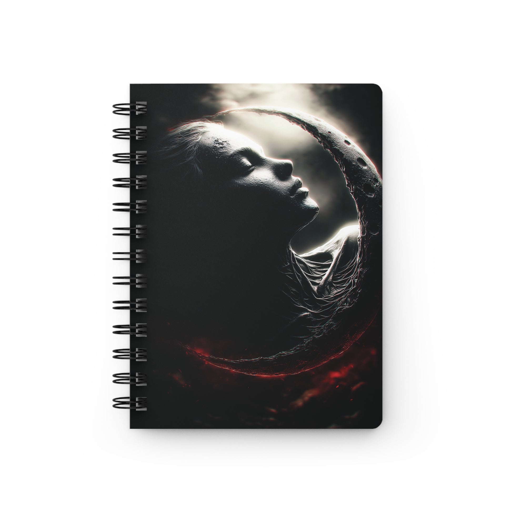 Laissez-vous captiver par l'intensité de cette œuvre d'art sombre et lumineuse. L'image présente une figure féminine dont le profil serein fusionne avec un croissant de lune texturé et colossal, créant une symbiose parfaite entre la beauté humaine et l'élément céleste. La lumière dramatique éclaire son visage, tandis que son corps et l'intérieur de la lune sont plongés dans l'ombre et la texture. La base du croissant de lune est enveloppée d'une lueur rouge et ardente, ajoutant une touche de danger ou de passion au mystère. Ce design est idéal pour les amateurs d'art gothique romantique, de symbolisme lunaire, et d'imagerie dark fantasy puissante. Il est parfait pour ceux qui recherchent des designs élégants, mélancoliques et pleins de profondeur.