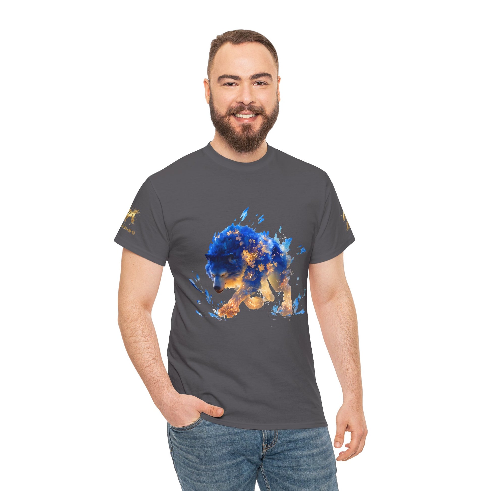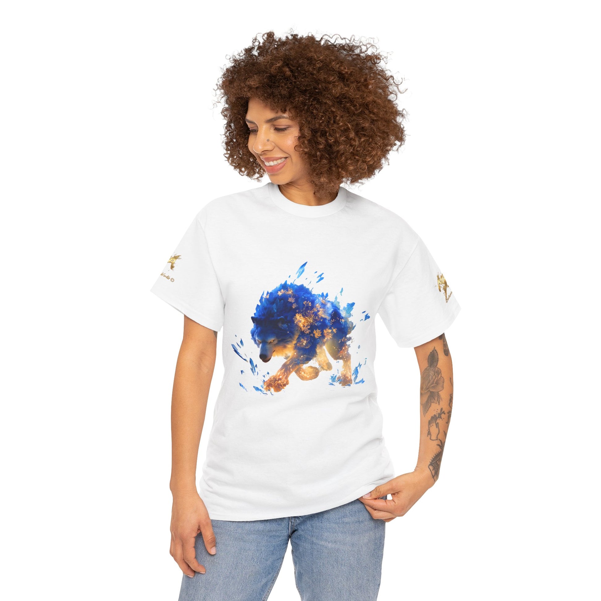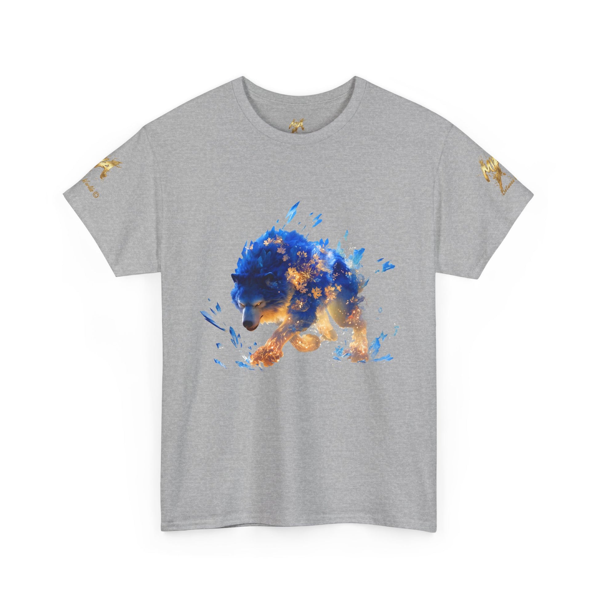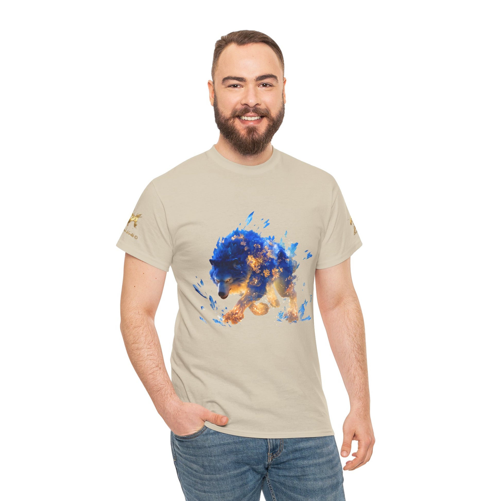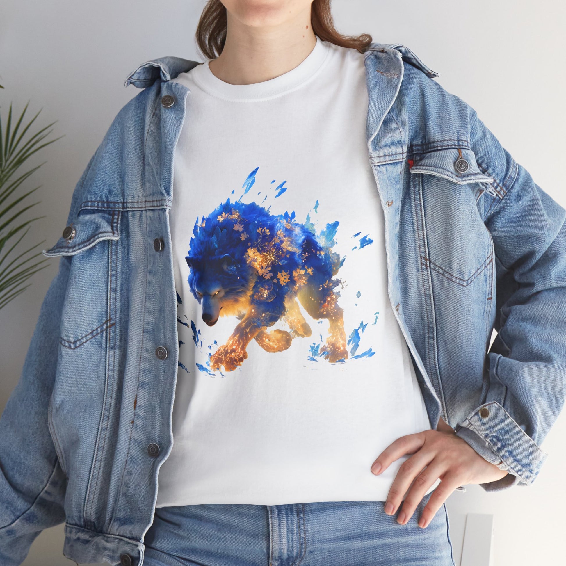 Plongez dans l'univers de la fantasy avec cette illustration saisissante d'un Loup Esprit. Le corps de la créature est un mélange puissant de fourrure d'un bleu électrique intense et de formations de cristaux de glace acérés, contrastant fortement avec des motifs de flammes et de braises dorées qui semblent irradier de l'intérieur. Générée par intelligence artificielle, cette image capture la force et la magie d'un être légendaire, à la fois glace et feu, figeant un mouvement de chasse intense. Les yeux perçants et la détermination du loup en font un design captivant. Parfait pour les amateurs de magie élémentaire, de créatures fantastiques, de loups mystiques et d'art conceptuel vibrant. Un ajout idéal et saisissant pour des posters, des sweats à capuche, des autocollants ou des coques de téléphone.