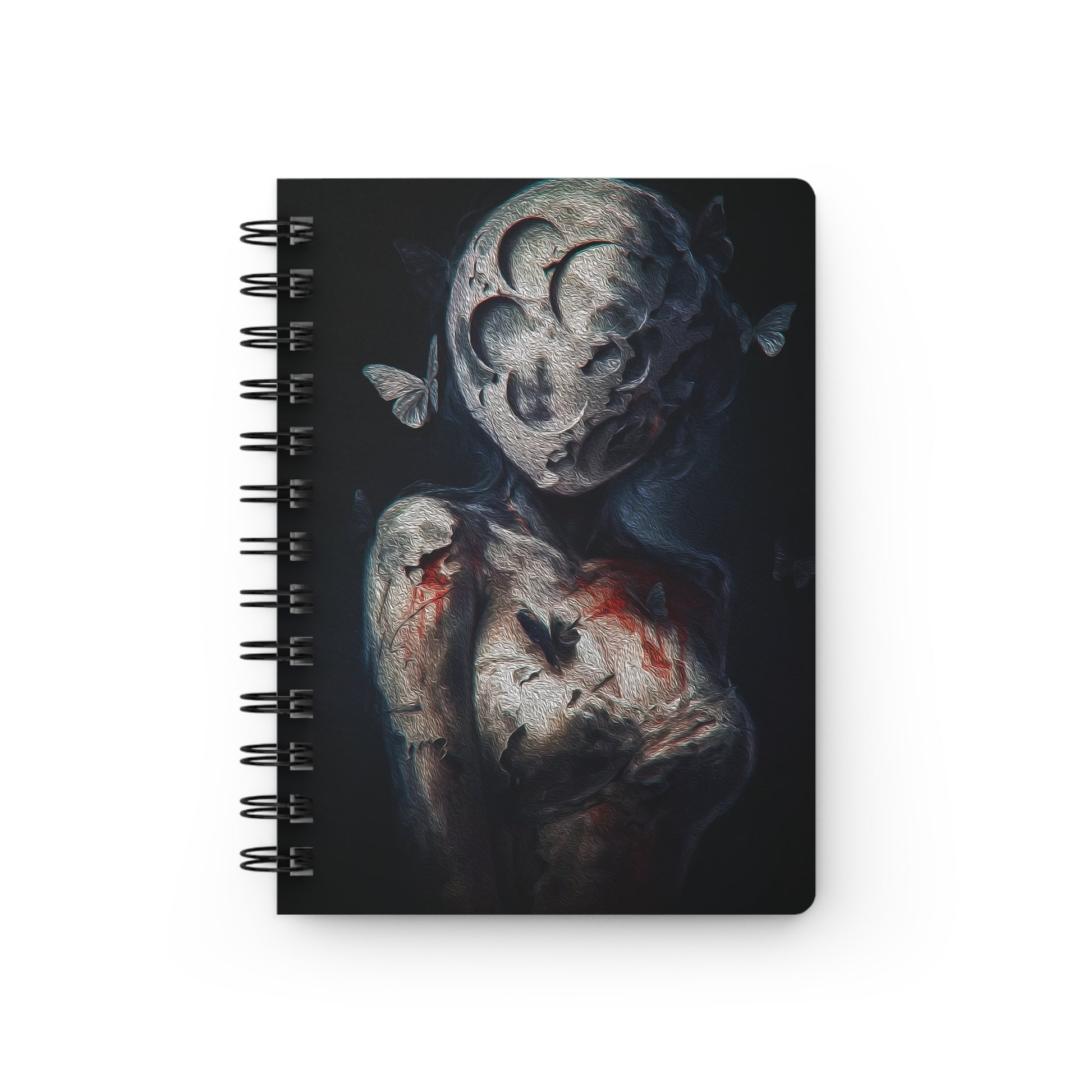 Plongez dans l'intensité de cette œuvre d'art sombre et texturée. L'illustration présente une silhouette féminine éthérée et torturée. Son visage est remplacé par une structure squelettique ou lunaire faite de croissants de lune superposés, évoquant l'absence ou la transformation. La peau est marquée de cicatrices et de traces de sang sous une texture de peinture à l'huile brute. L'ensemble est entouré de papillons blancs délicats, contrastant violemment avec l'obscurité de l'arrière-plan et la douleur du sujet. C'est un design idéal pour les amateurs d'art gothique, d'esthétique sombre, de dark fantasy et ceux qui apprécient les thèmes de la métamorphose, de la mélancolie et de la beauté dans la douleur. Parfait pour un poster, une toile, ou un t-shirt d'art expressif.