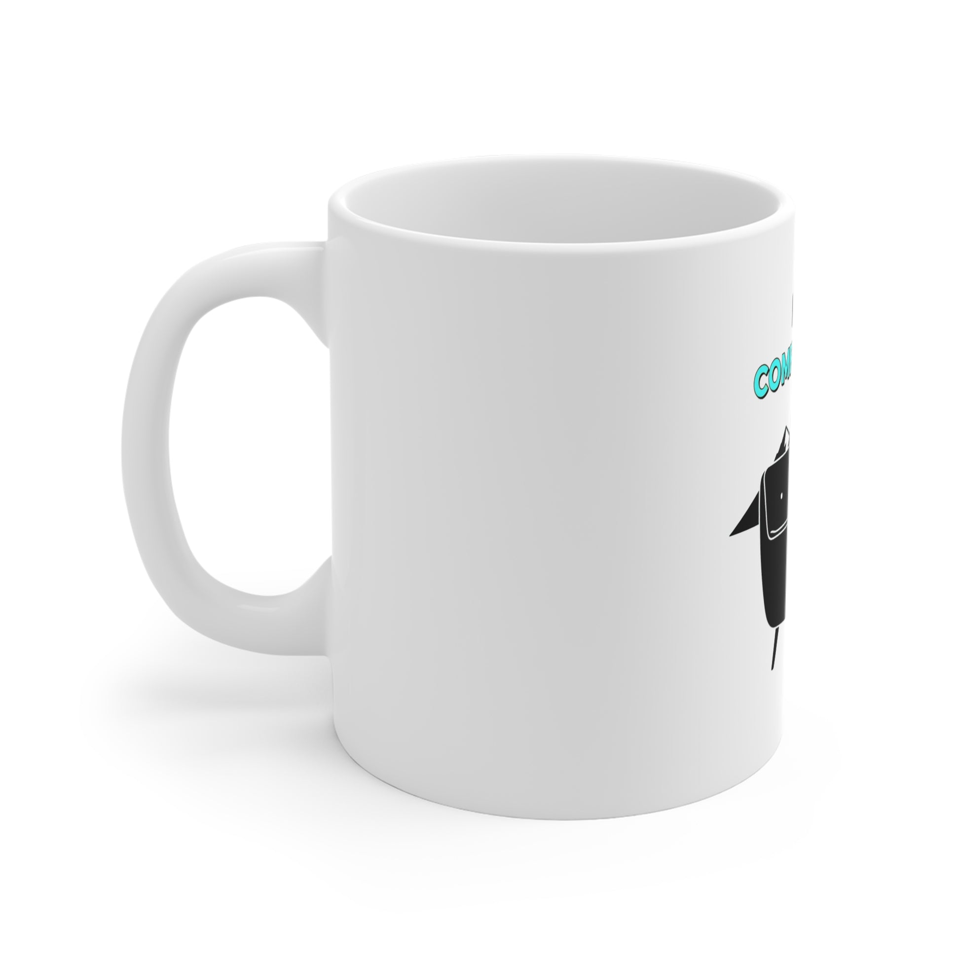 Le graphisme enveloppe entièrement la céramique blanche, pour que cette phrase astucieuse vous accompagne sous tous les angles. Robuste, simple et assumant pleinement son côté amusé — c'est le genre de tasse qui déclenche un sourire avant même la première gorgée.